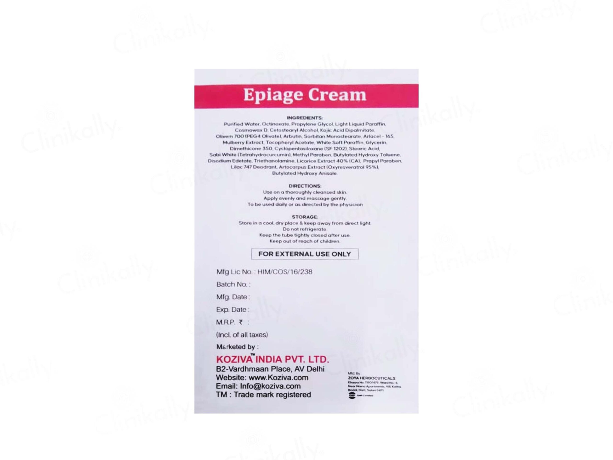 Epiage Skin Lightening cream designed to fade dark spots, reduce discoloration, and enhance skin brightness.