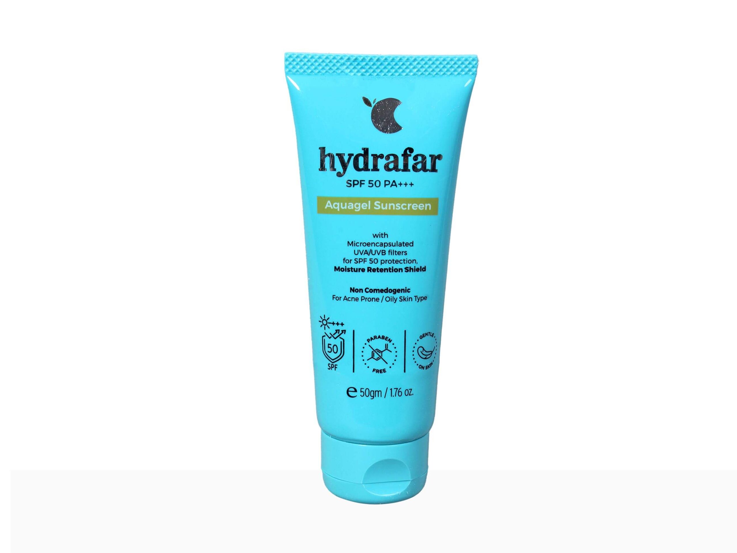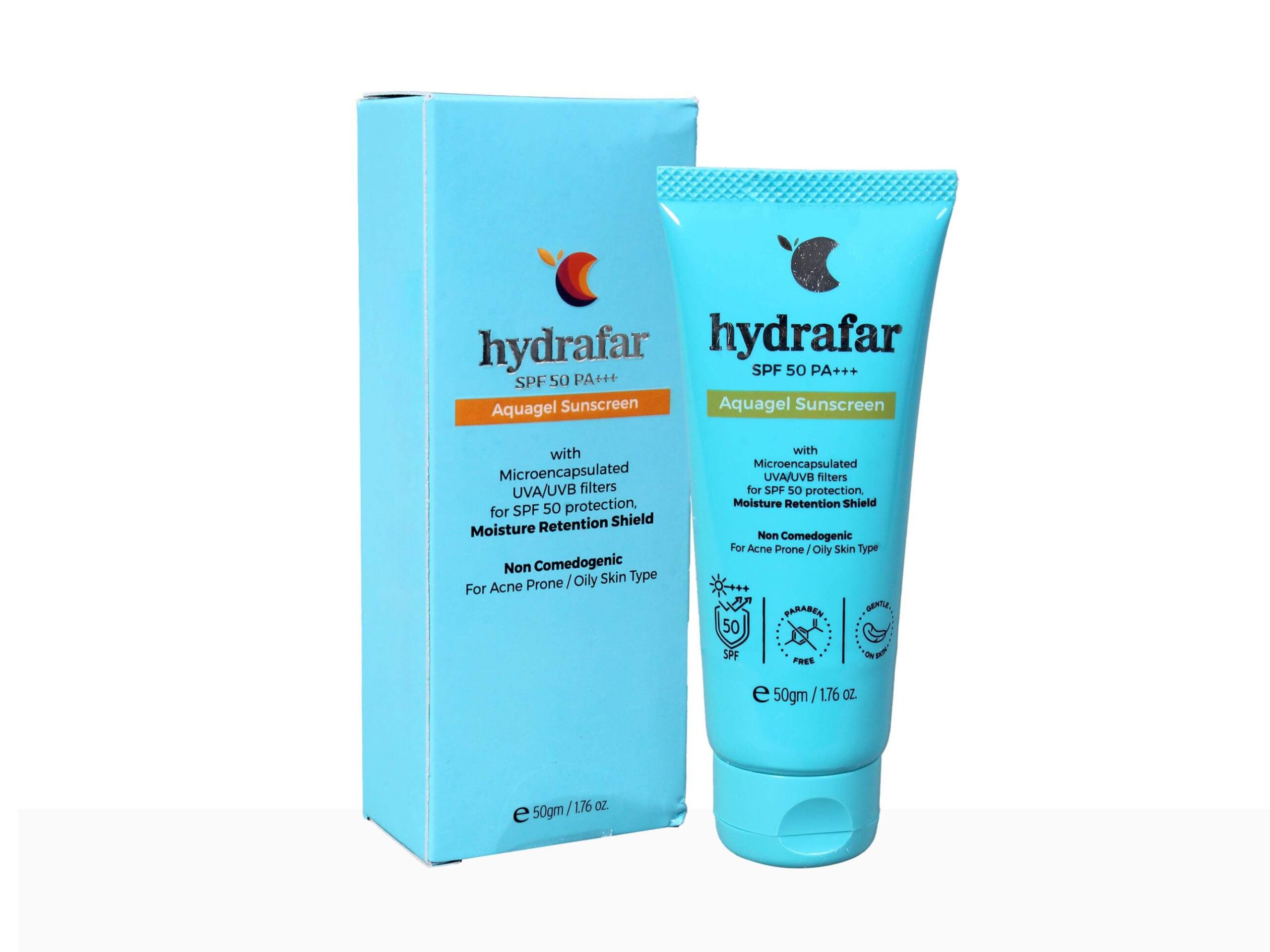 Hydrafar Aquagel Sunscreen SPF 50 offers lightweight, non-greasy broad-spectrum sun protection